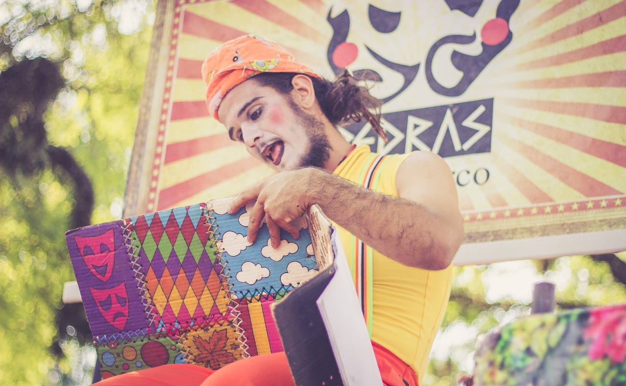 Alguns elementos utilizados nos espetáculos: poesia, malabares, acrobacias, perna de pau entre outros.